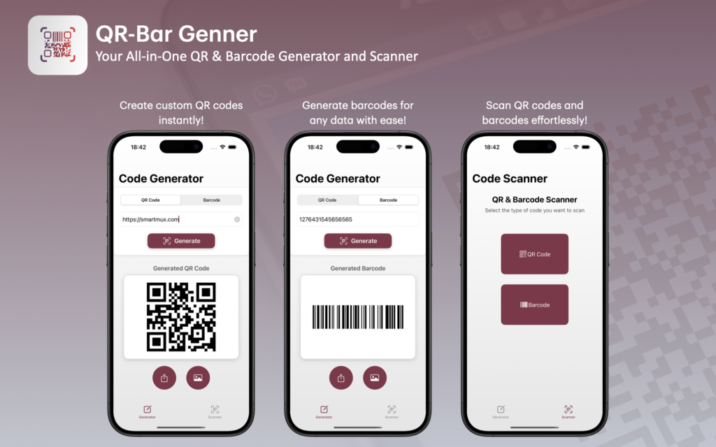 Looking for the fastest way to generate or scan QR codes and barcodes? Our app offers you the ultimate all-in-one solution! Whether you want to share a link, contact info, product data, or scan anything around you — this app makes it incredibly easy and fast.